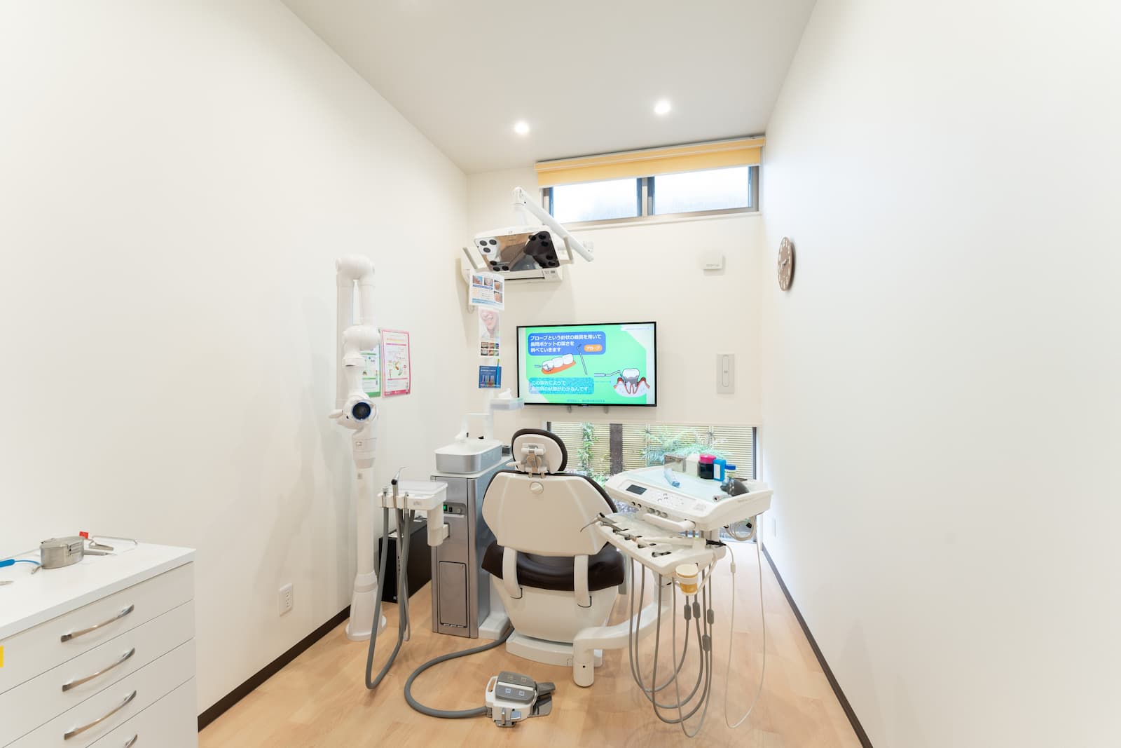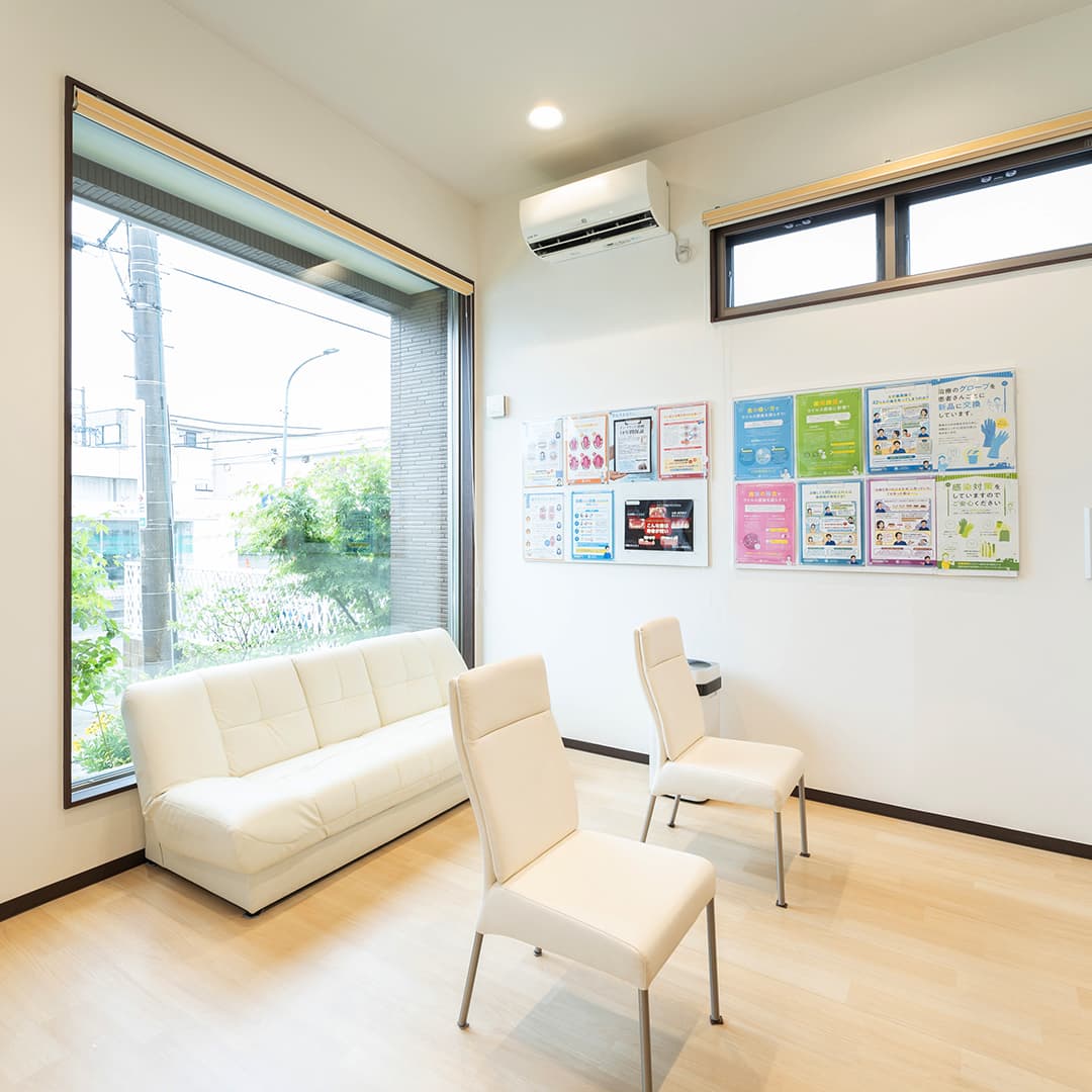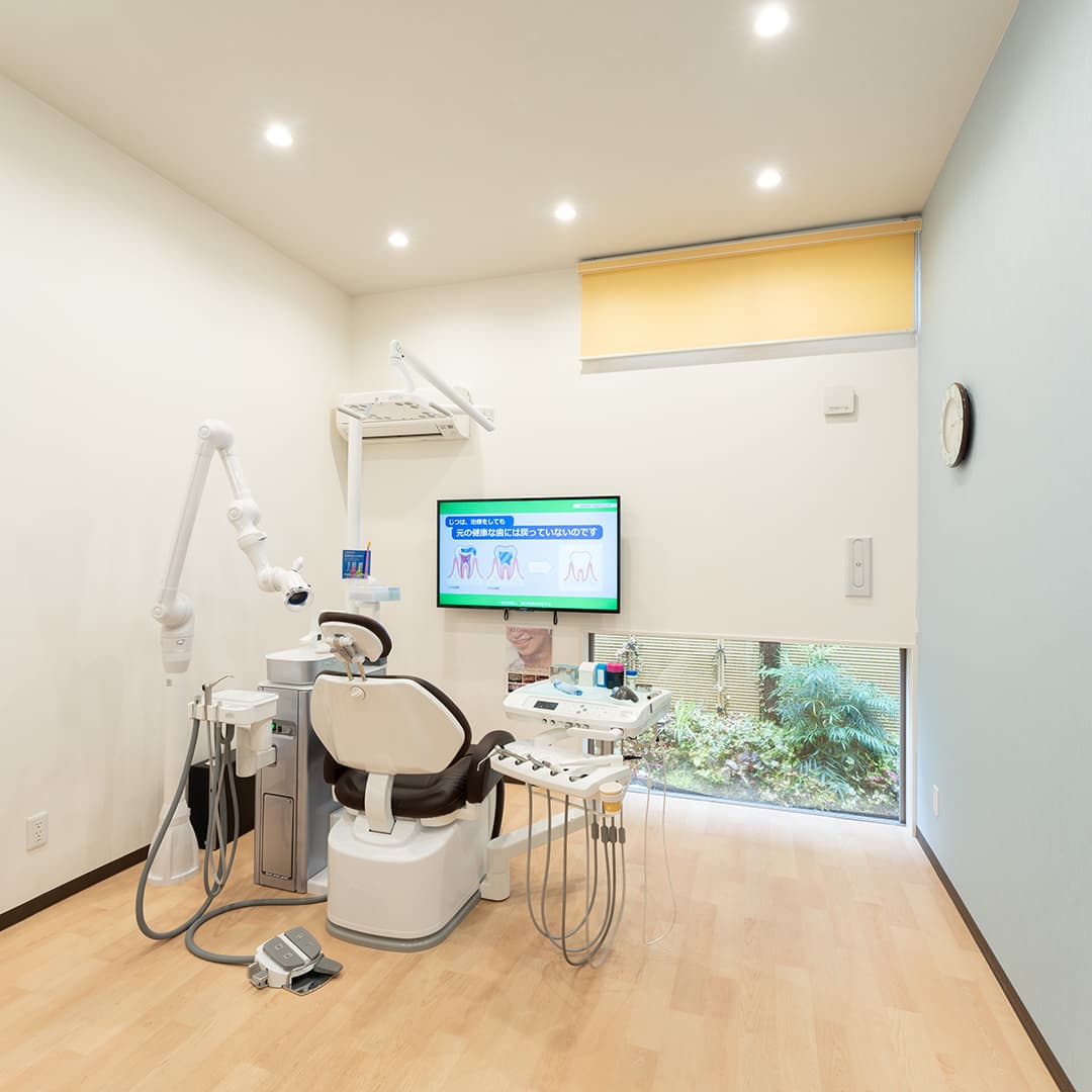 新設された建物ならではの清潔感と、落ち着いた雰囲気の内装が特徴です。待ち時間は、モニターのある待合室でリラックスしてお過ごしください。院内は常に換気し、空気清浄機も設置しております。 また、高水準の治療を可能にする先進設備も積極的に導入いたしました。歯や顎の骨、神経や血管の位置などを立体的に映し出せる歯科用CT、ペンタイプと一眼レフタイプの2種類の口腔内カメラなどを完備し、より精密な検査ができる環境を整えております。